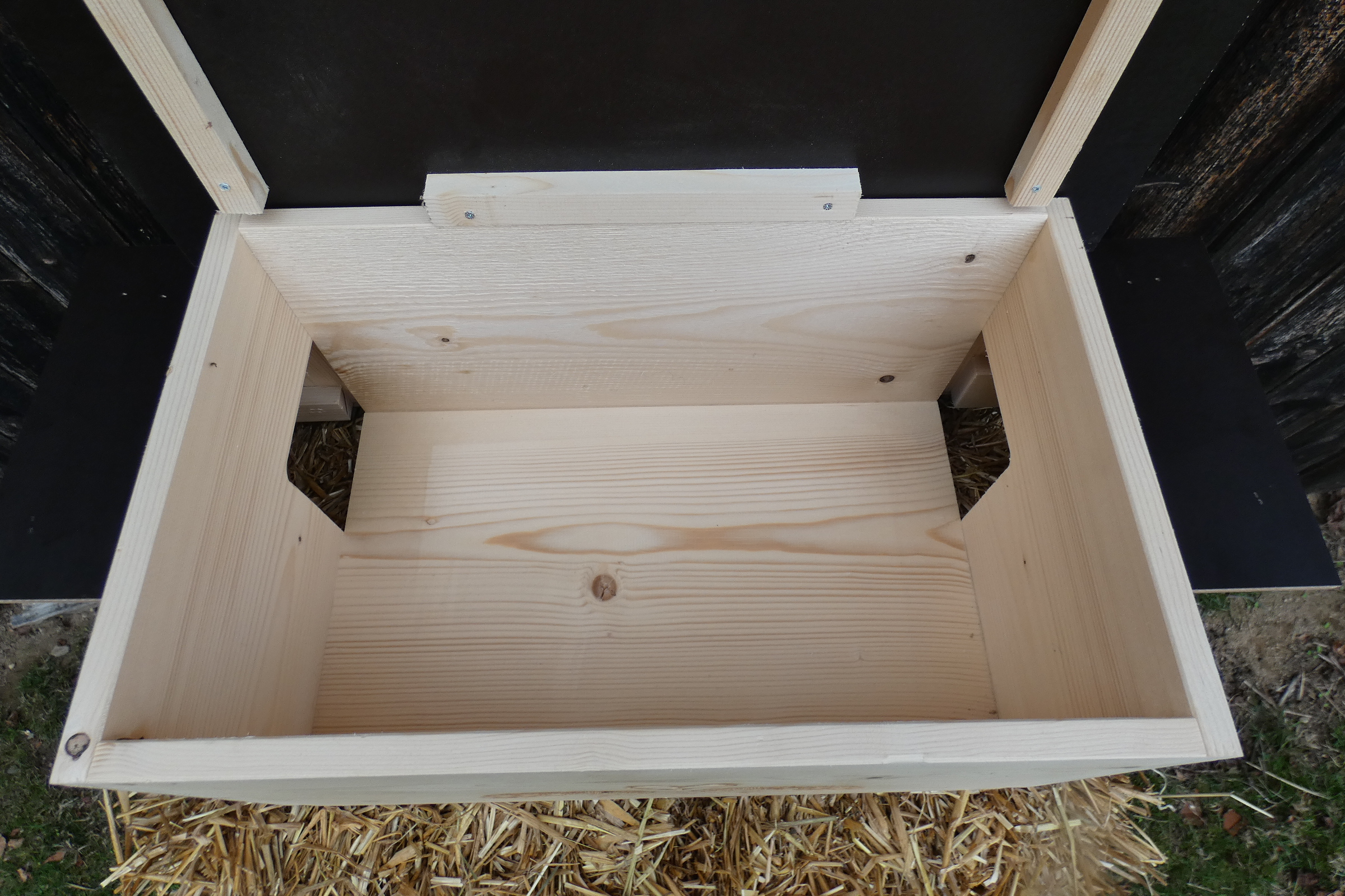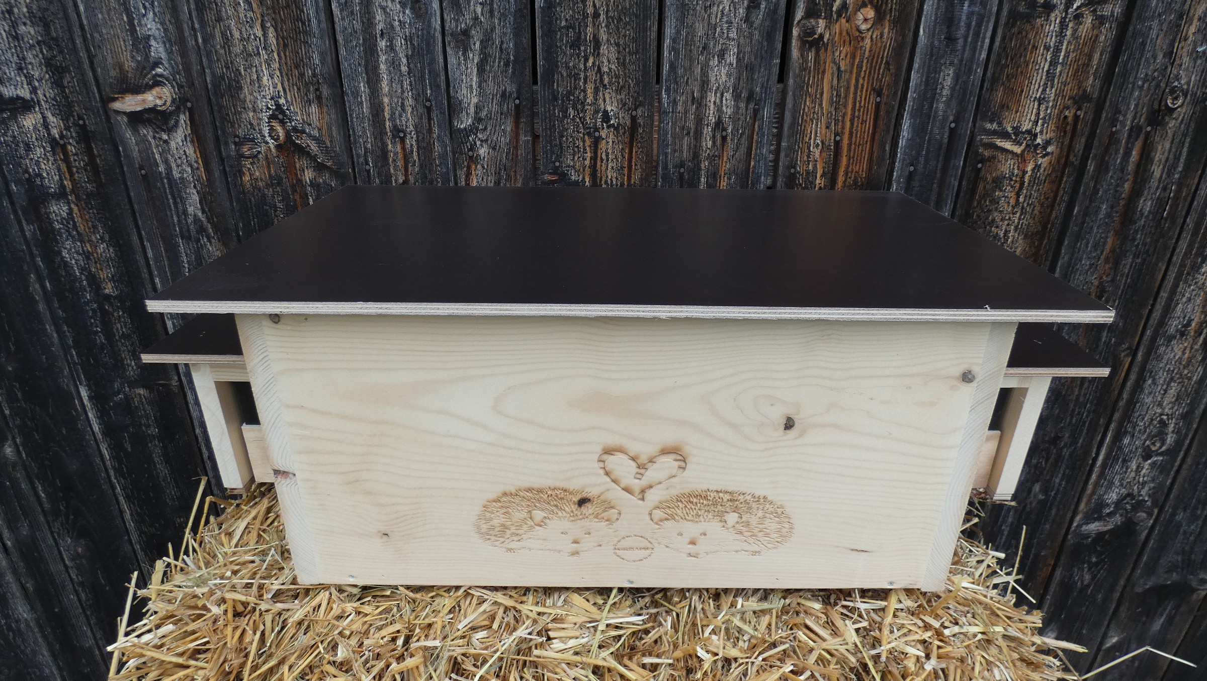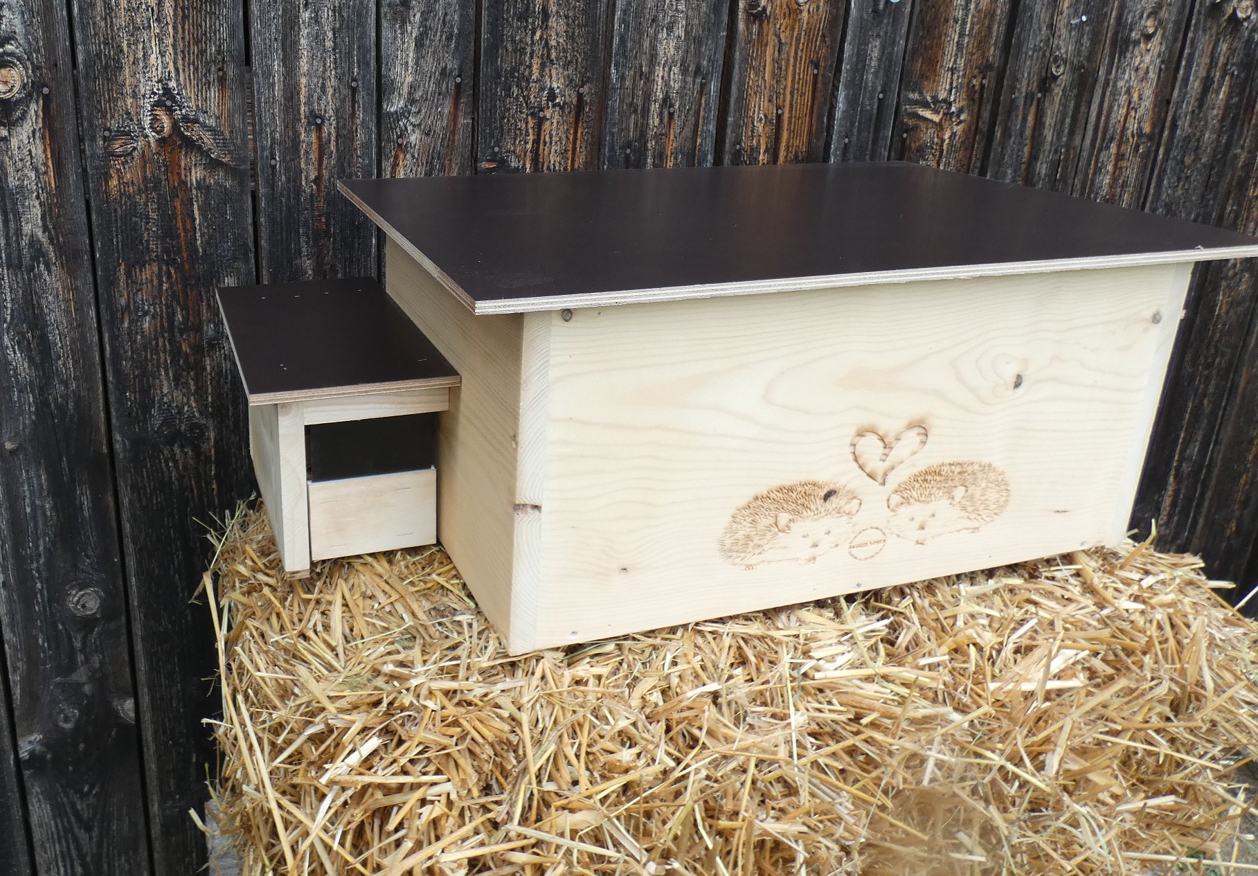 - XL Igelfutterhaushaus aus stabilem 18mm starken Fichtenholz mit Labyrintheingang und Easytouch- Rattenklappe welche nicht wie bei den meisten Anbietern nach einiger Zeit fest wird und somit ein "Igelgrab" wird