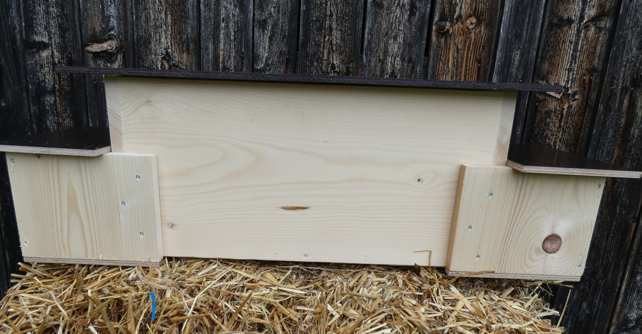 - Dieses Futterhaus hat die Laby. Eingänge aussen, damit innen der ganze Raum für das Futter bleibt.